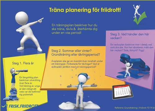 Låt de unga aktiva själva, i mindre grupper, skriva ett eget träningsprogram för en till två veckors träning som ni sedan tränar efter. Diskutera om något saknas som kanske skulle vara med? Har hänsyn tagits till säsong?