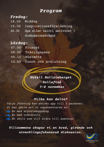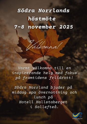 Varmt välkomna på Södra Norrlands höstmöte på Hotell Hallstaberget i Sollefteå, den 7-8 november.