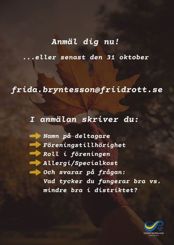 Anmäl redan nu till frida.bryntesson@friidrott.se