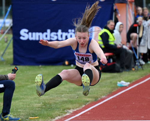 Ytterligare ”pers” kunde man räkna in för Nike Eklind Ludvigsson, Åsbro GoIF, som hade i sitt tredje försök första hoppet över tio meter i tresteg när hon landade på 10.01. Hon persade också i kula, där Nike var tvåa, på 11.25. Samt att hon vann höjdhoppet på tangerade perset 1.50.