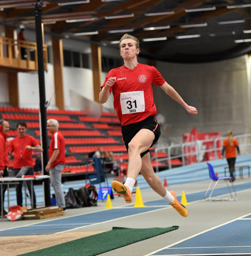 Hela tävlingen kanske främsta resultat svarade Samuel Ekelund, Göta, för när han hoppade 7.70. Något som gav hon om en plats i det svenska landslaget. Årsbästa med 88 centimeter Och 30 centimeter när det gäller inneperset. Tvåan August Stierna, Nyköpings BIS, slog pers med 6.89 och med Ali Dawood, Göta, som trea på 6.81.