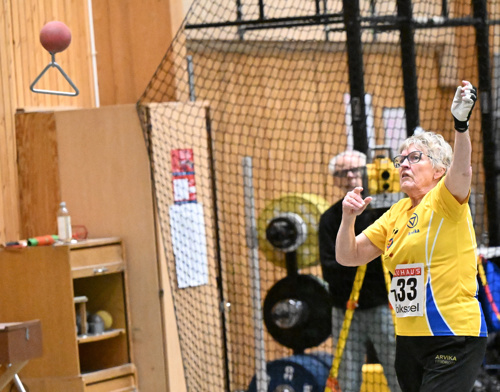 Serie var så bra som 10,48 på 60 meter häck, 4.33 i längd, 9.17 i kula, rekordhoppade med 1.32 samt hade 4.29,62 på avslutande 1000 meter. Summa: 3 guld, 1 silver och 1 sjätteplats. Men också två svenska rekord i M75-klassen, 60 meter på 9.02 och 60 meter häck på 10,43.