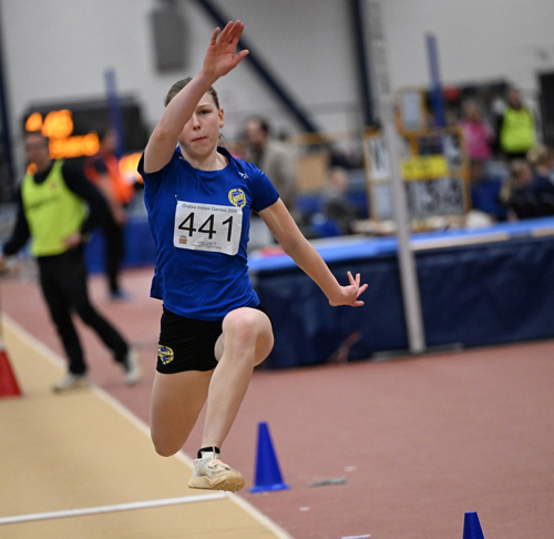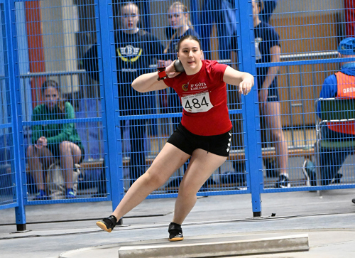 Slutligen i seniorklassen så hade Emilia Malmehed, Göta, nytt tävlingsrekord för ”ÖIG”, när hon noterade hela 15.08. Det var hennes sjätte bästa tävling inomhus.