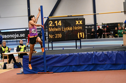 En dubbel blev det för Melwin Lycke Holm, Kils AIK, som underlördagen slog till med ståtliga 7,57 (nytt pers) och hade totalt tre hopp över 7.50. Melwin följde sedan upp med att även ta hem höjdhoppet på 2.10. Där han var så nära att klara 2.14, men den röda flaggan flög upp efter var och ett av försöken. Och det var ju inte riktigt så han hade tänkt sig höjdhoppet.