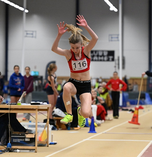 En hemmaseger tog Thilda Högberg i längdhoppet med 4.83 med en marginal på två centimeter till tvåan Keita Kaplere från Motala. Den senare var även tvåa på 60 meter häck med 10,20 just bakom Elvira Rasmusson från Örebro på 10,13. Då blev det en klarar seger för Ingrid Selin, Västerås FK, med 2.60 som var två höjningar före tvåan.