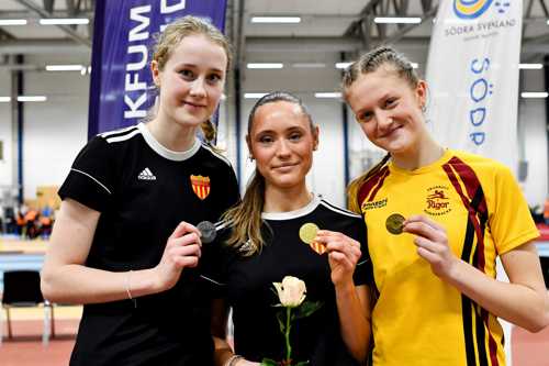 En fin och spännande tävling fick vi även se när F17-klassen gjorde upp om SM-medaljerna i höjd. Tea Noreland, Södertälje IF, vann på nya personbästat 1.71, fem centimeter högre än hon tidigare har hoppat. Pers även av silvermedaljören Wilma Herranen, Mälarhöjdens IK, som klarade 1.69. Trea blev Maja Malmström, IF Rigor, som tog 1.65.