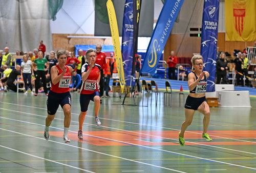 K60 Elisabeth Eickhoff, Ymer vann 200m på 33,57. Det blev dessutom andraplatser på 60m (9,96) och på 400m (83,49). Trea här var Katharina Seger, Borås LK på 90,64. Katharina tog också brons på 1500m med 7.44,83.